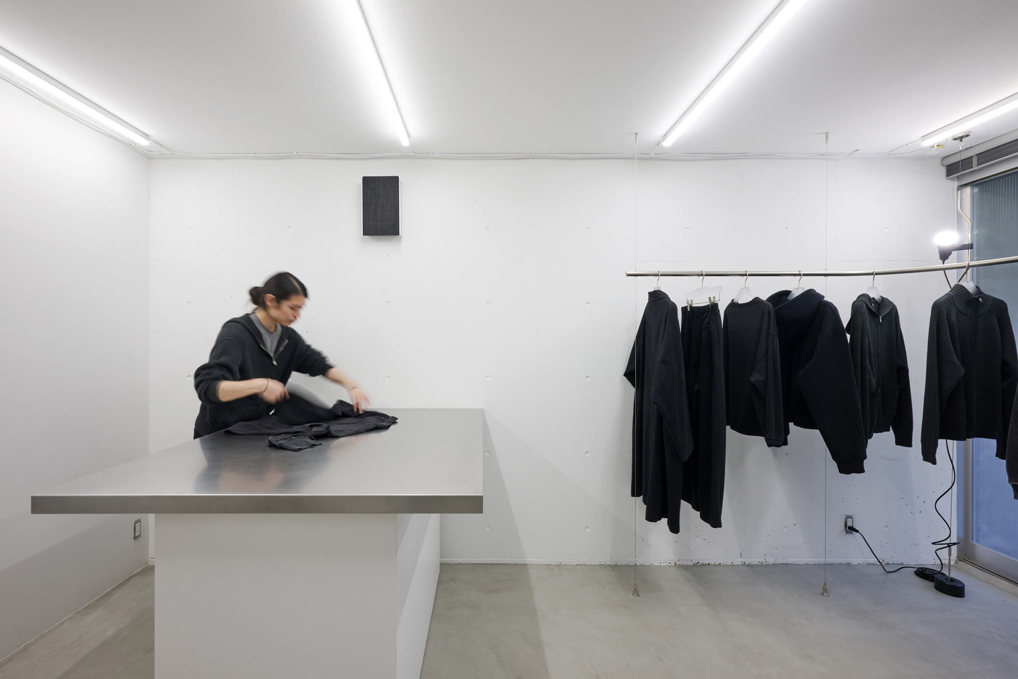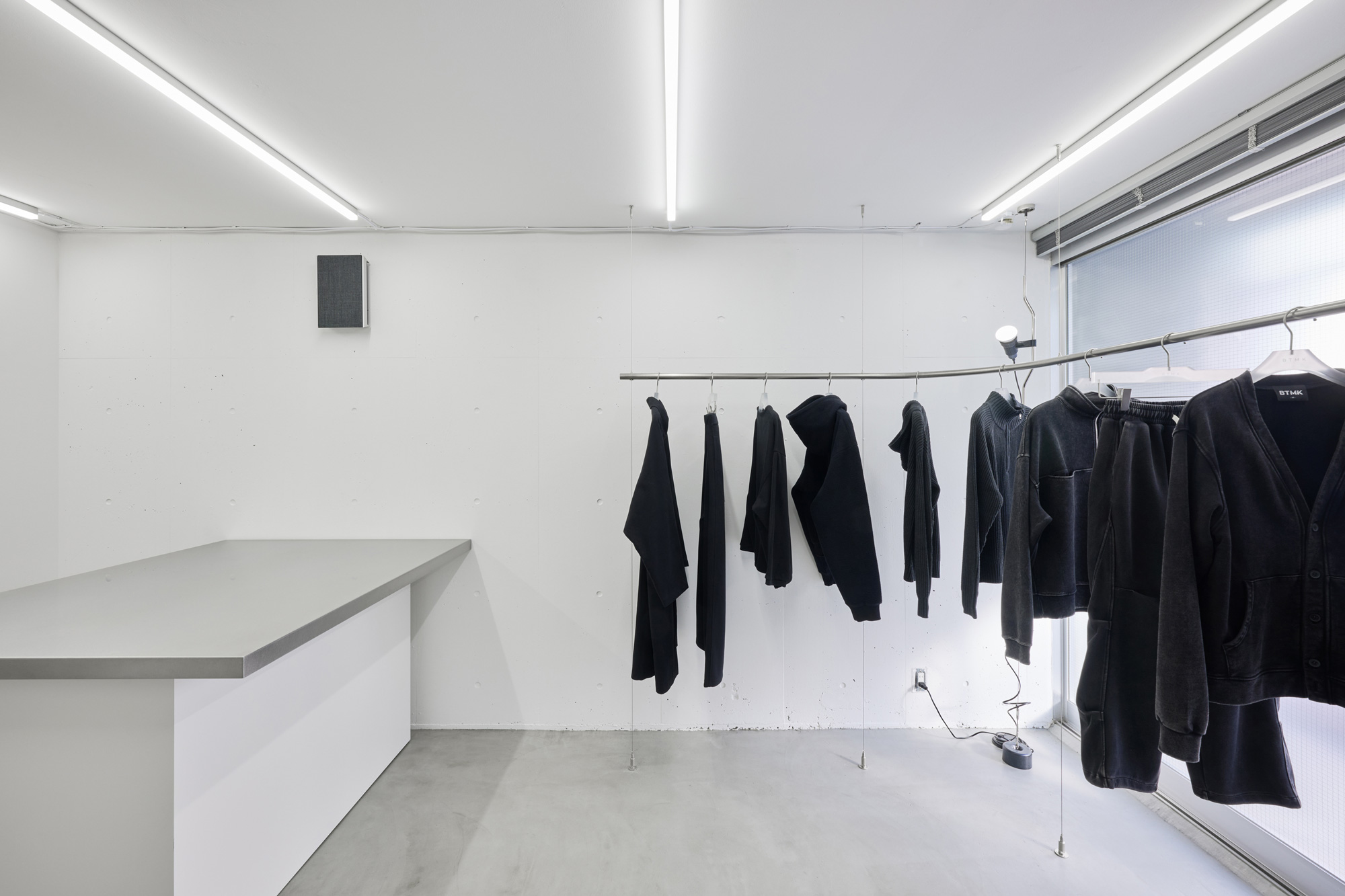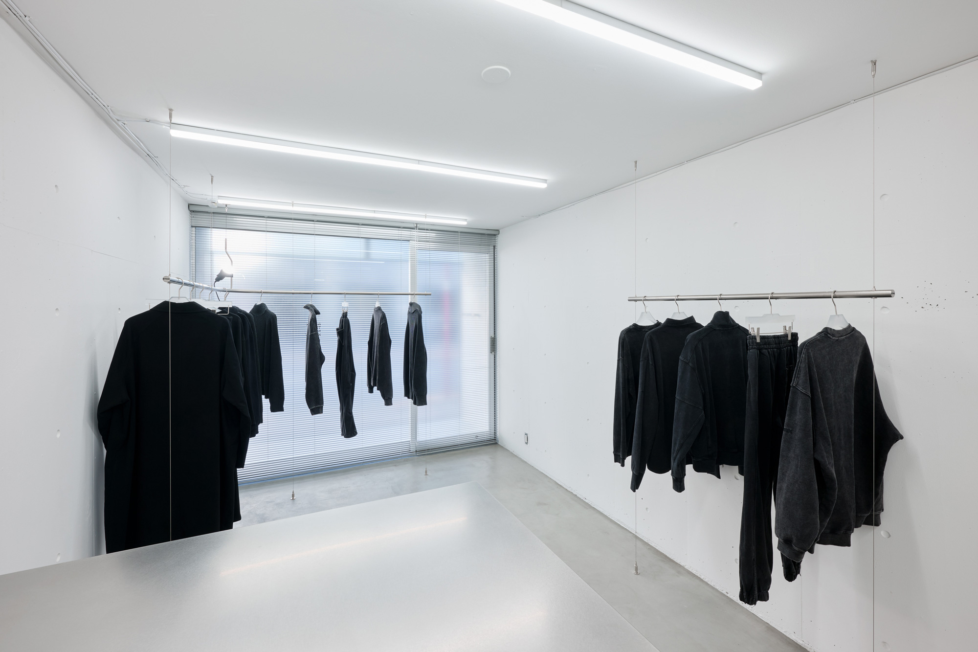 基本的には黒のみを展開しているブランドで、空間を白で統一し、商品が目立つ場所とした。