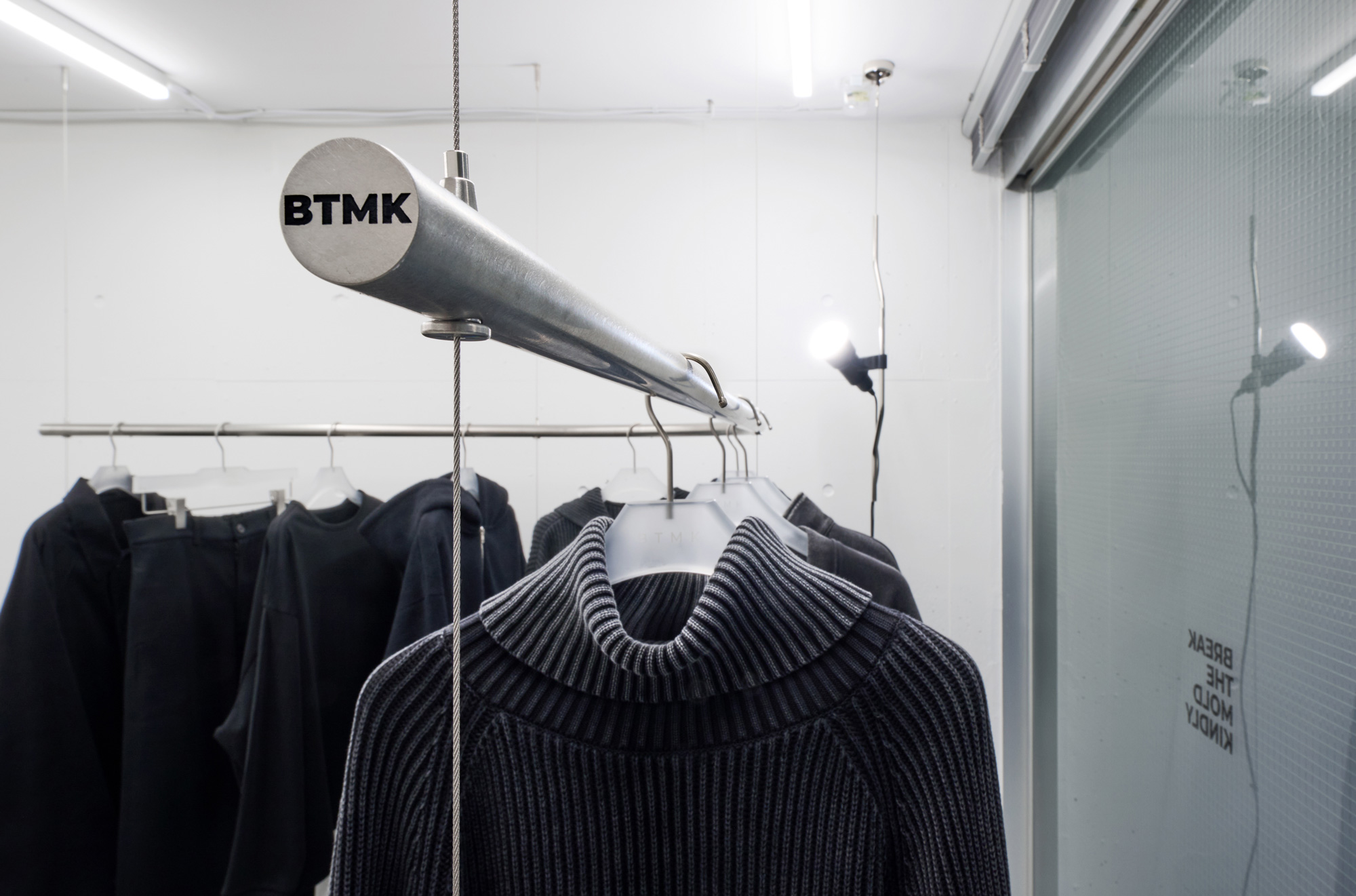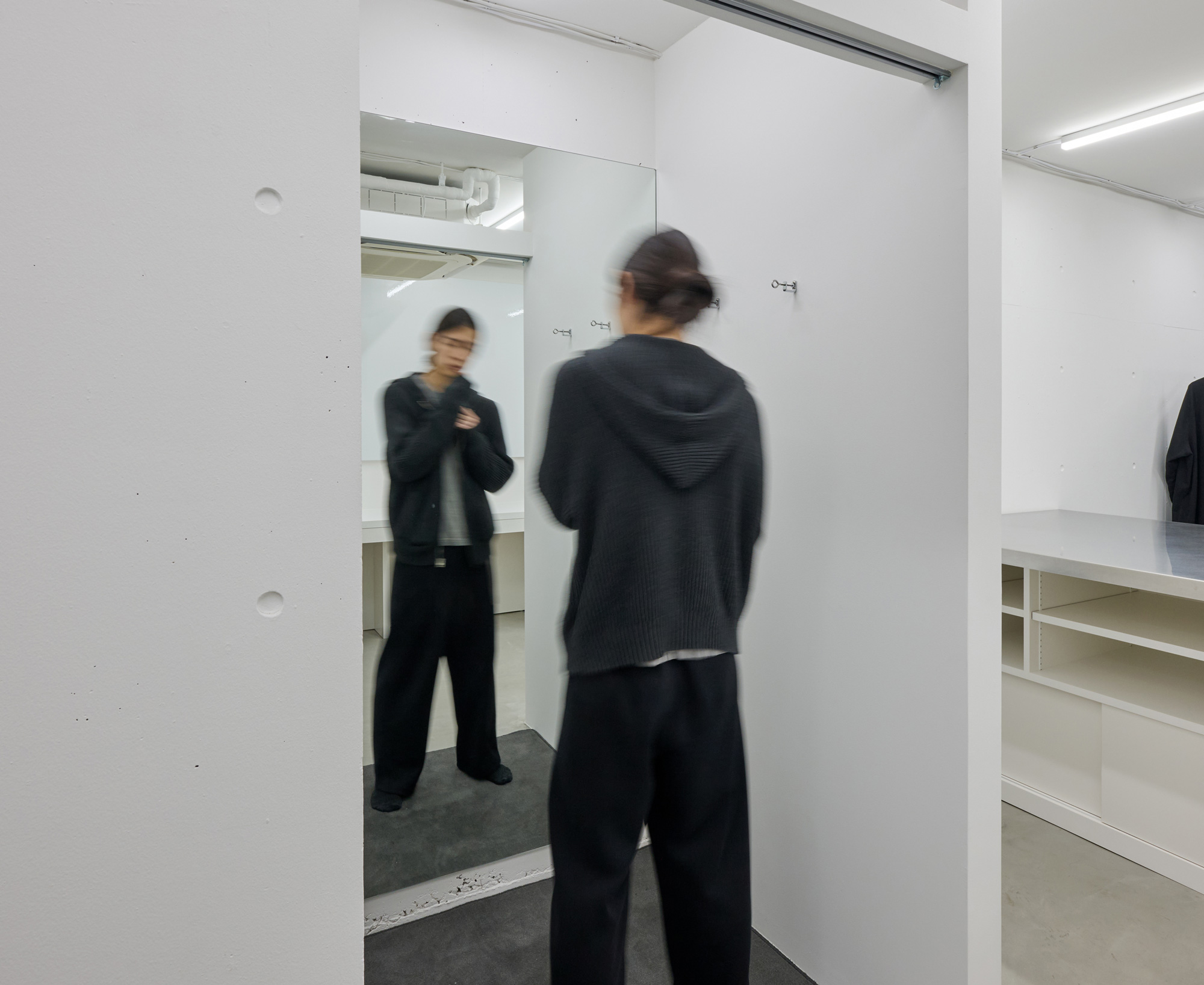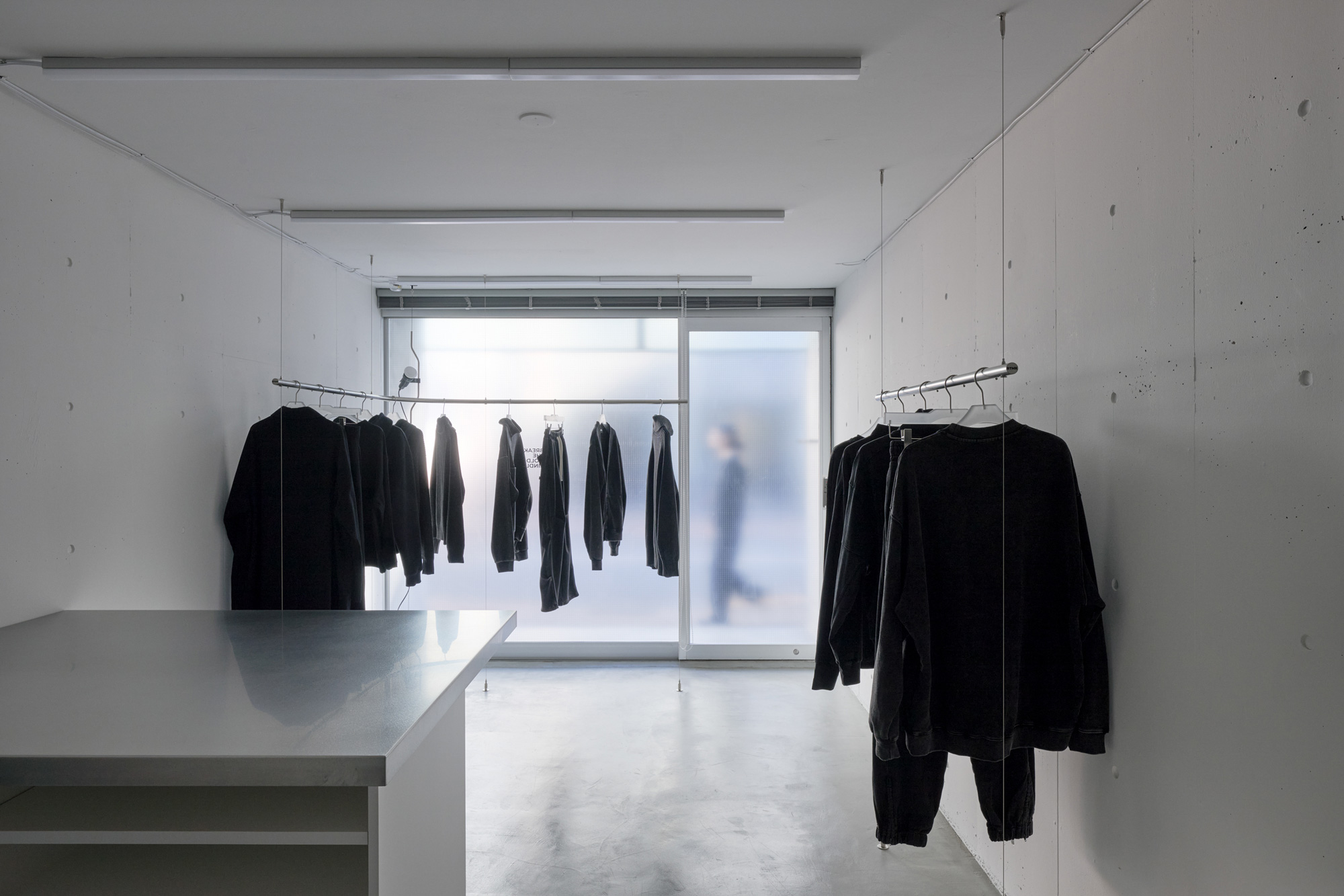 基本的には黒のみを展開しているブランドで、空間を白で統一し、商品が目立つ場所とした。