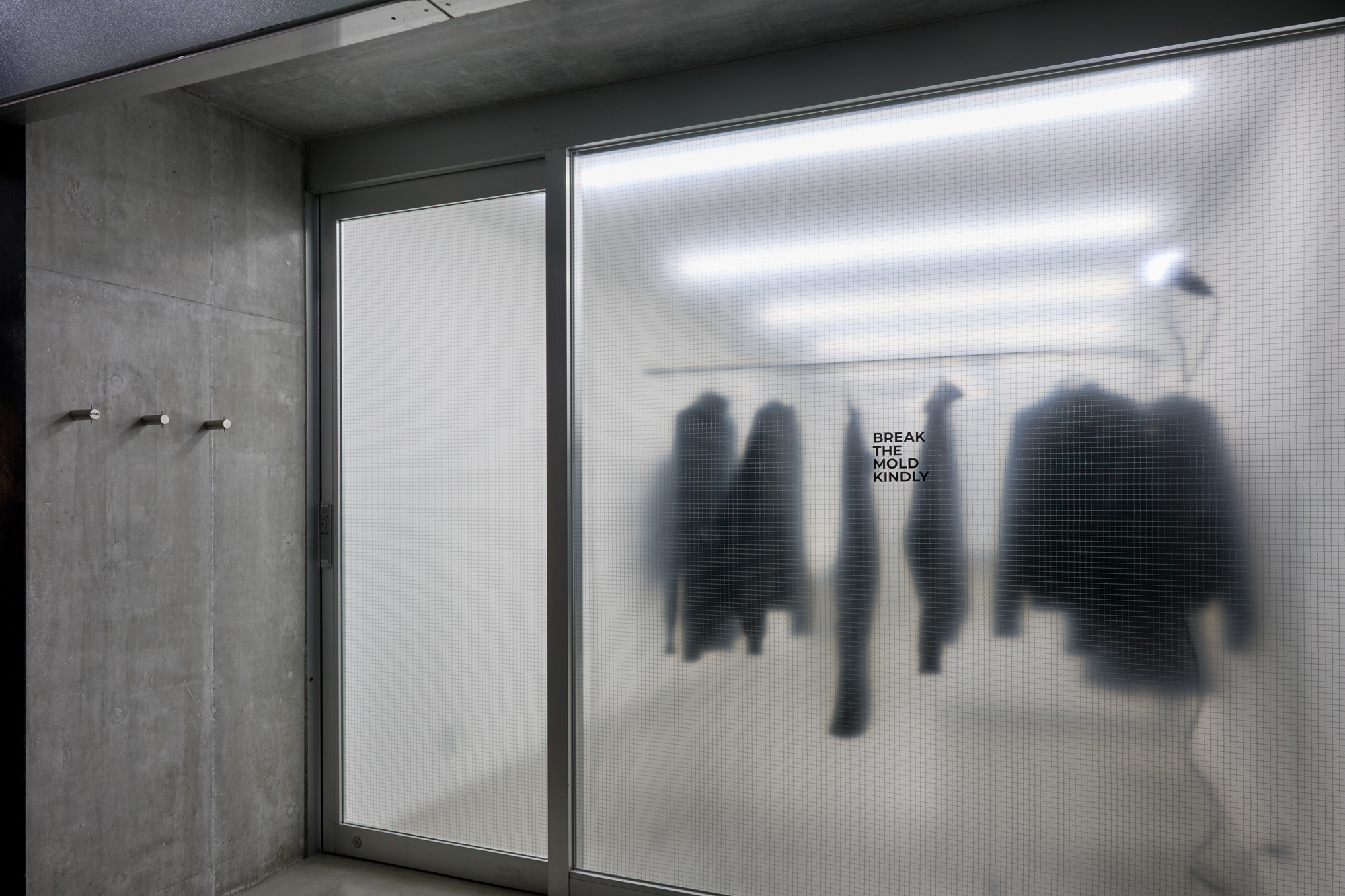 例えばハンガーの小口にロゴサインを入れたり、エントランスサインが傘掛けになっていたり、